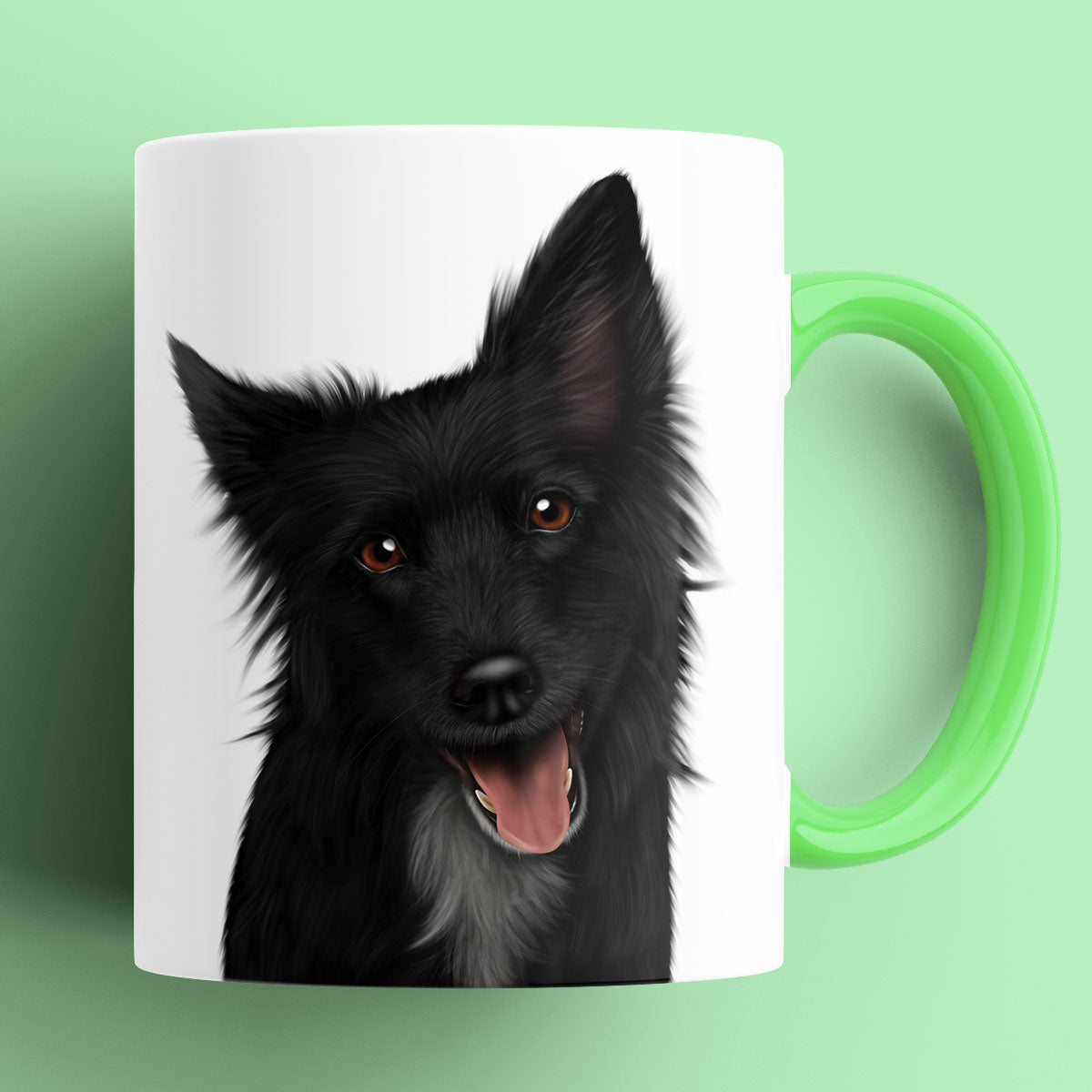 Adorable Black Border Collie Illustrated mug by Kitty's Art.