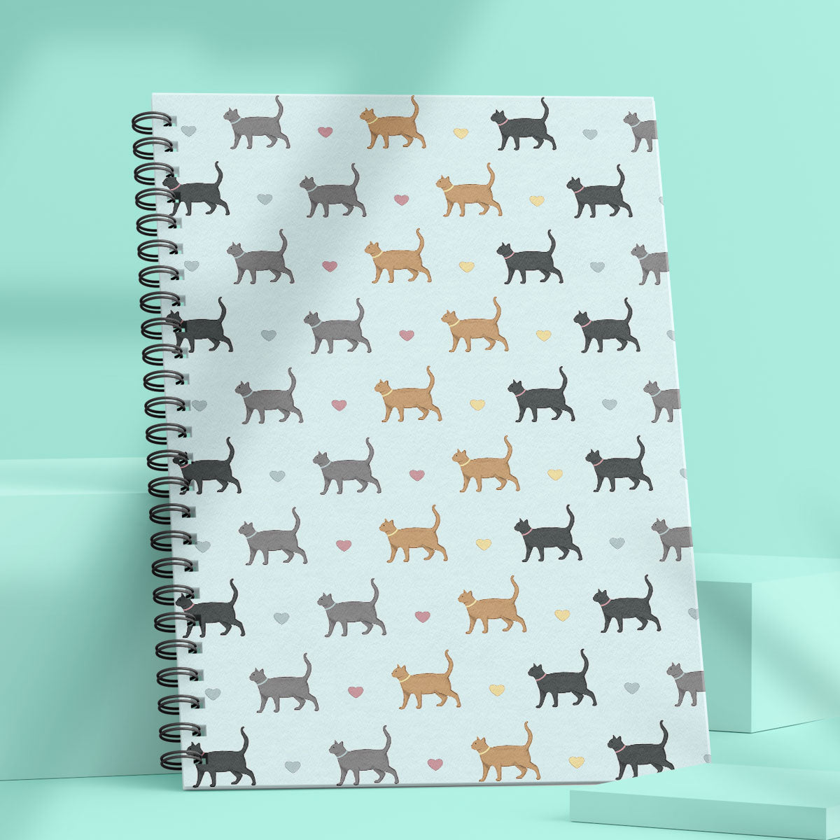Add a bit of colour to your stationery collection with this cute Cats and Hearts patterned notebook. Illustrated with love by Kitty's Art.