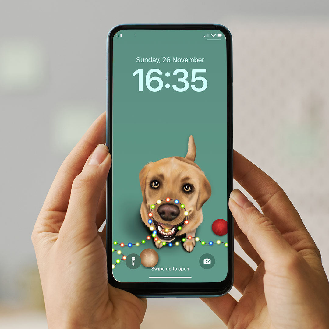 Download the perfect wallpaper for your phone this Christmas season – show your festive spirit with a yellow Labrador surrounded by tree ornaments! Get your fun and furry holiday wallpaper now!